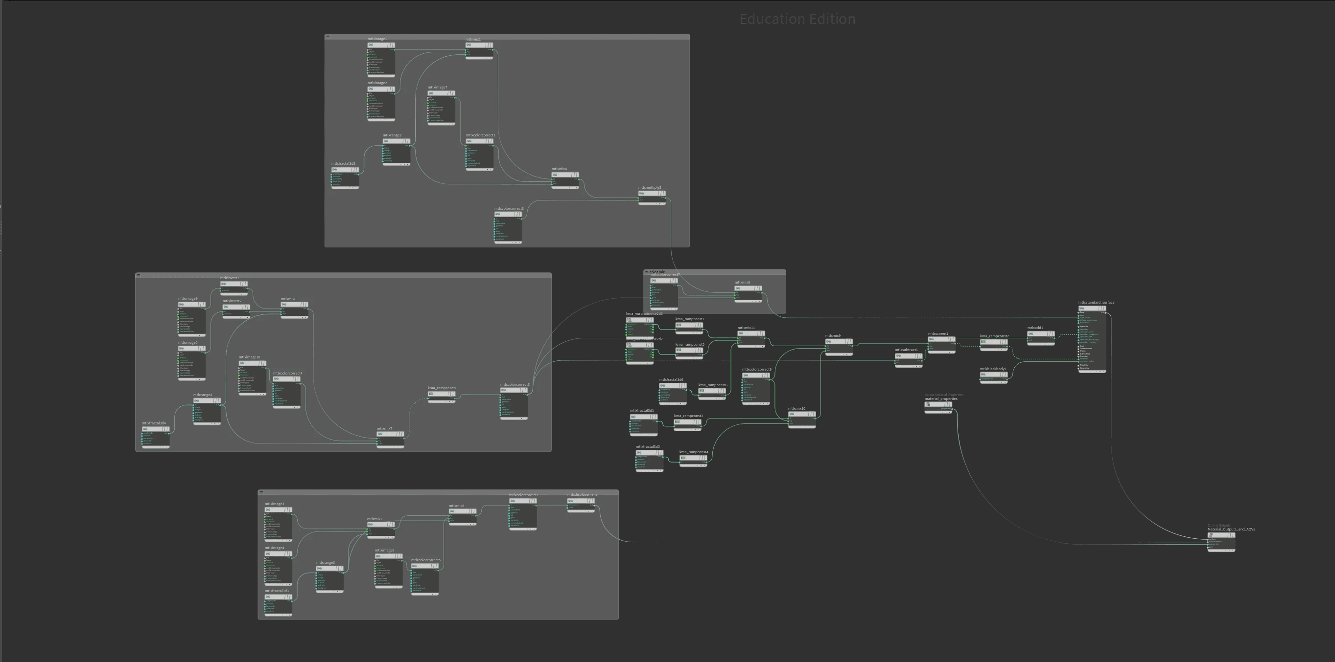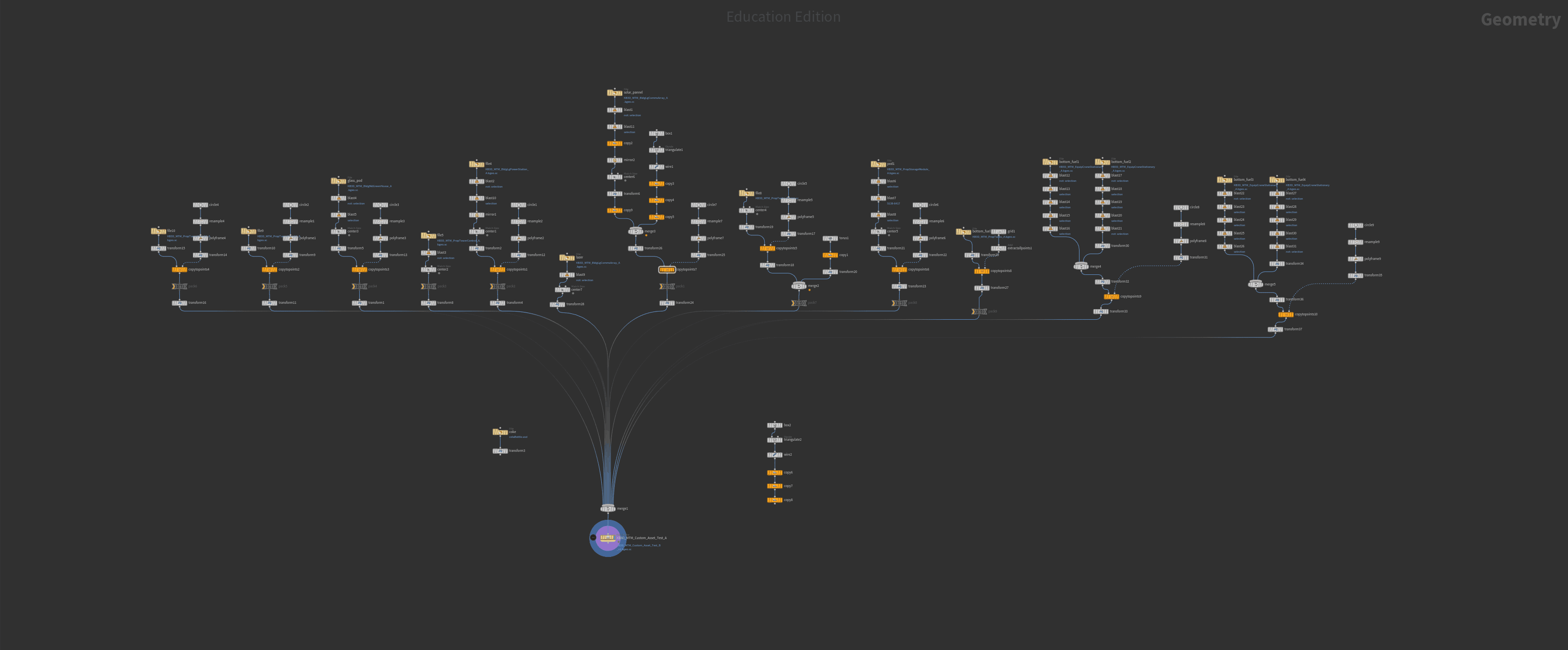 Node tree of all my kit-bashed elements being isolated from their models arranged into the space station and then saved to disk