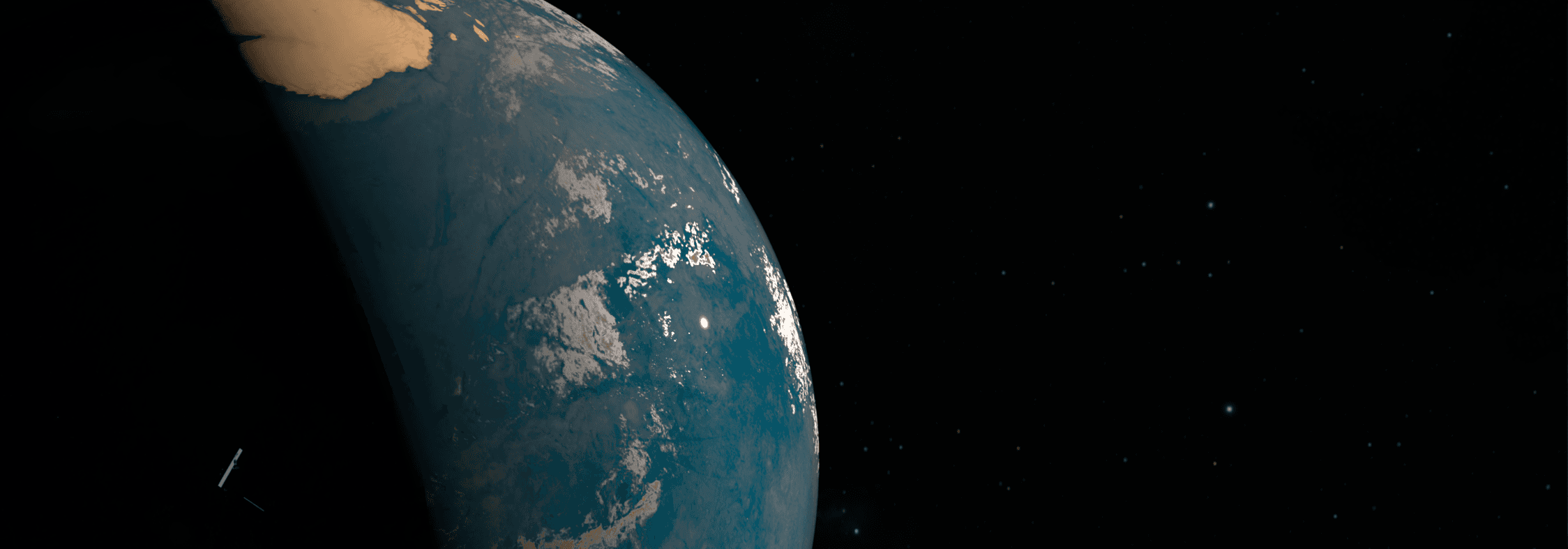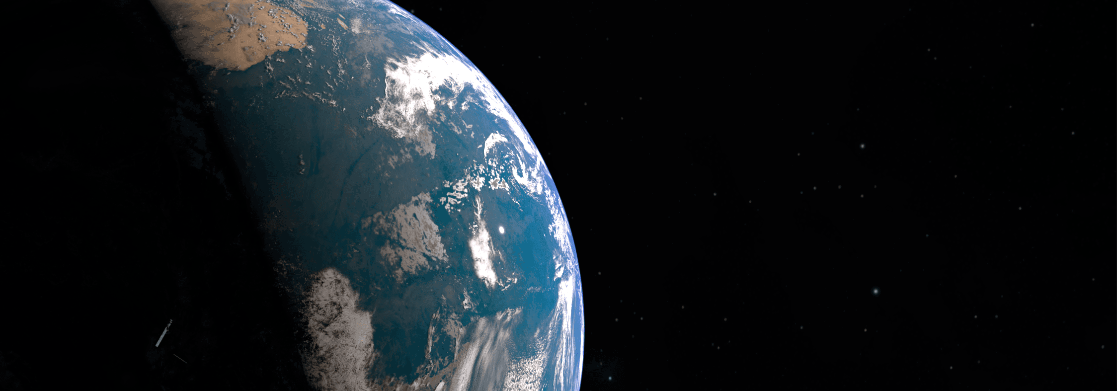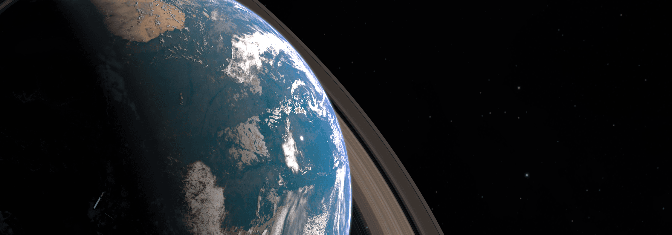 The planet was built by layering textured spheres to simulate its different elements—clouds, atmosphere, and the planetary surface. The base layer took the most time, since it required blending multiple textures to create the reflective water, natural ground colors, and the city lights on the night side. The cloud layer was simply a texture mapped into the opacity output, while the atmosphere combined a Fresnel node for those vibrant blue edges at glancing angles with a volume pass to catch and scatter the light.
