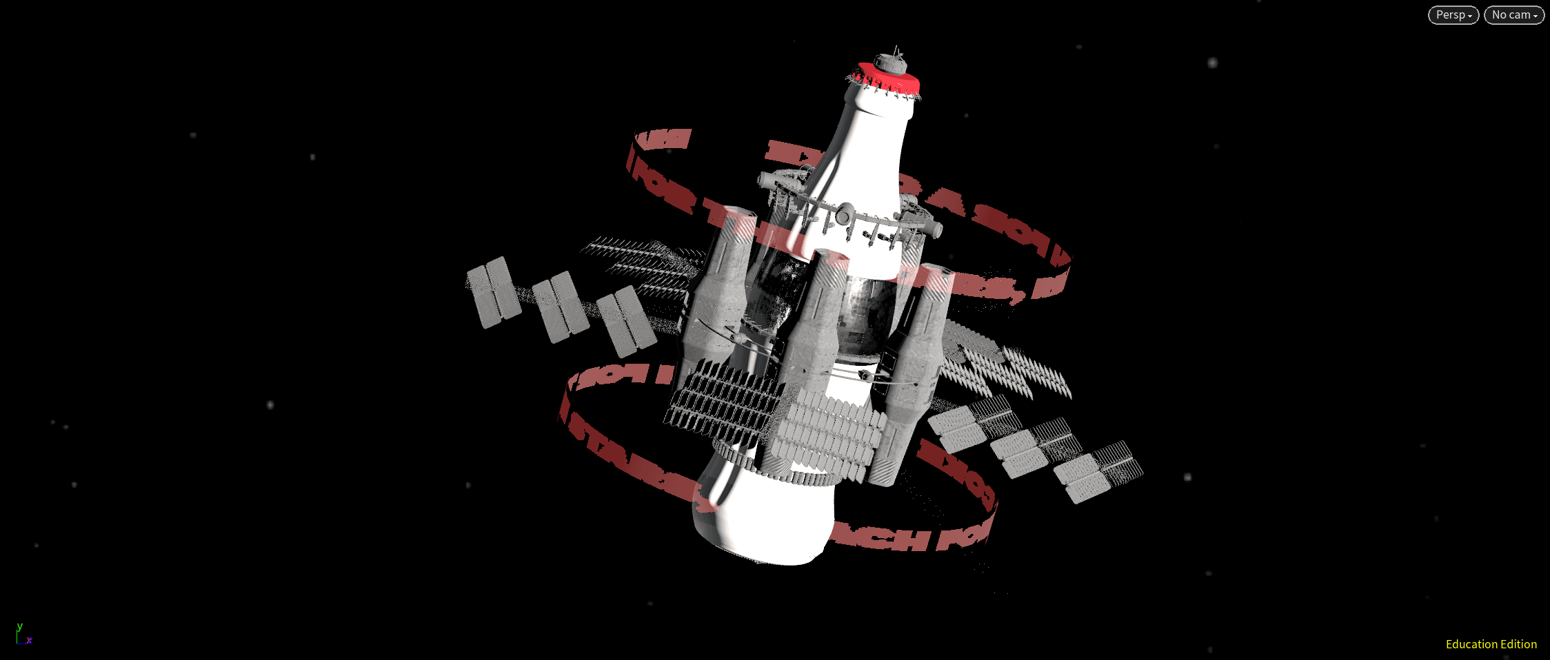 Using the KitBash3D assets, I did exactly what the name suggests and combined parts from the provided models to build a space station around the Coca-Cola bottle, transforming it into something larger than life.